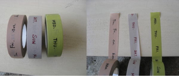 ![]() ------------------------------------------------- 曜日のアルファベットのデザインがかわいい。。 ラッピングやポストカードを貼り付けてみたり。。 テープを使って絵を描くこともたのしい。。 使い方色々のかわいいマスキングテープ ------------------------------------------------- ![]() ←スモークピンク ベージュ グリーン→